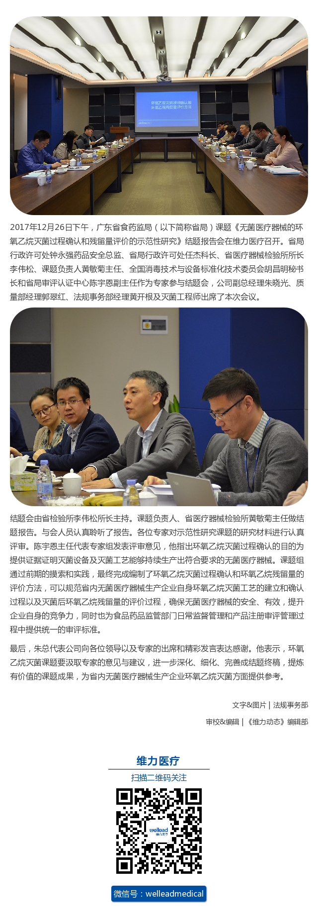 广东省食药监局课题《无菌医疗器械的环氧乙烷灭菌过程确认和残留量评价的示范性研究》结题会在维力医疗召开