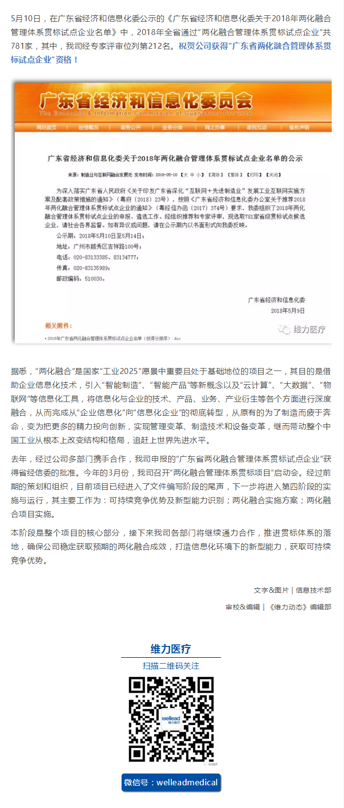 我司获得“广东省两化融合管理体系贯标试点企业”资格